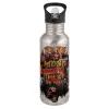 Halloween it's most wonderful time of the year, Water bottle Silver with straw, stainless steel 600ml