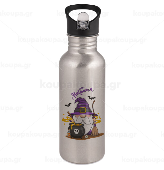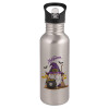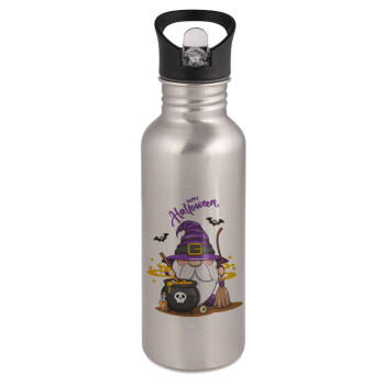 Happy Halloween (Χαλοουίν), Water bottle Silver with straw, stainless steel 600ml