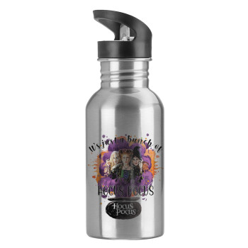 Hocus Pocus, Water bottle Silver with straw, stainless steel 600ml