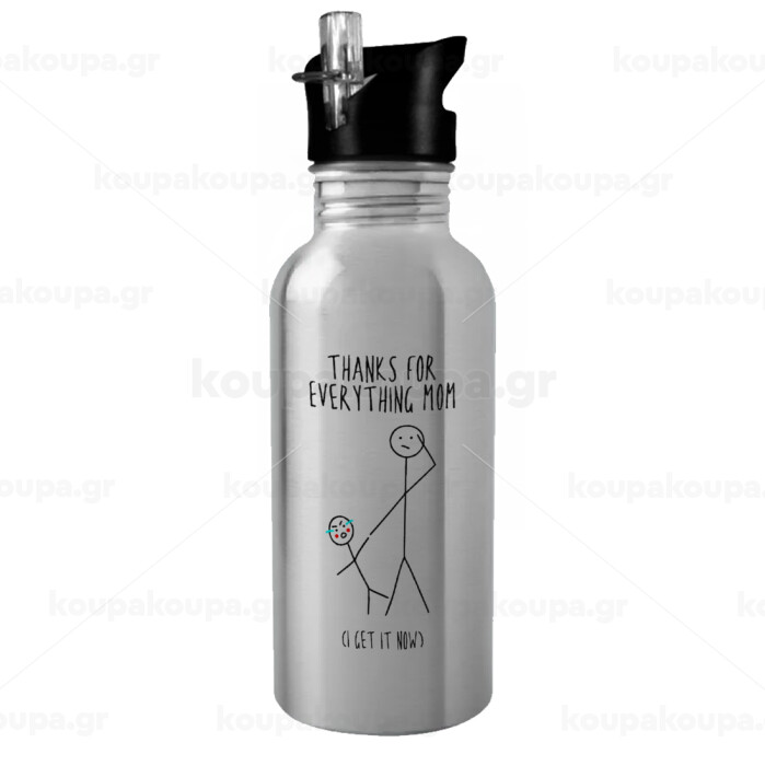 Thanks for everything mom, Water bottle Silver with straw, stainless steel 600ml
