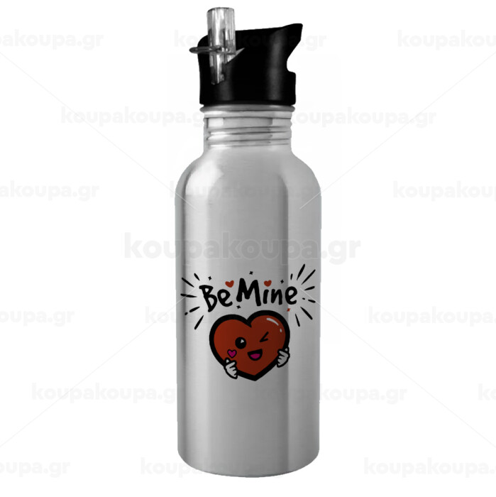 Be mine!, Water bottle Silver with straw, stainless steel 600ml