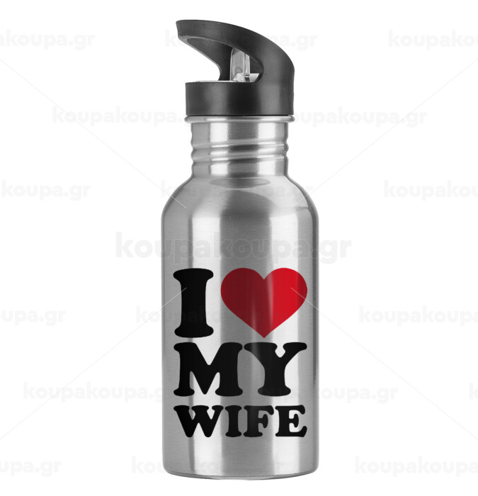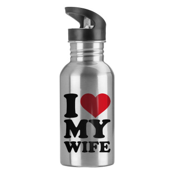 I Love my Wife, Water bottle Silver with straw, stainless steel 600ml