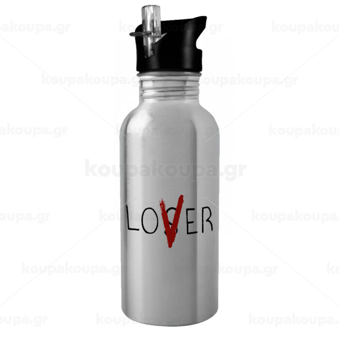 IT Lov(s)er, Water bottle Silver with straw, stainless steel 600ml