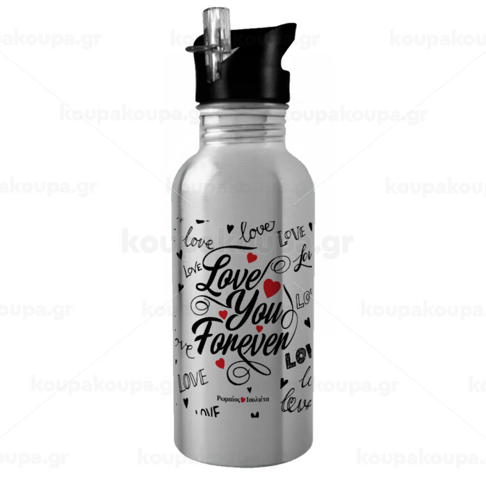 Love You Forever, Water bottle Silver with straw, stainless steel 600ml