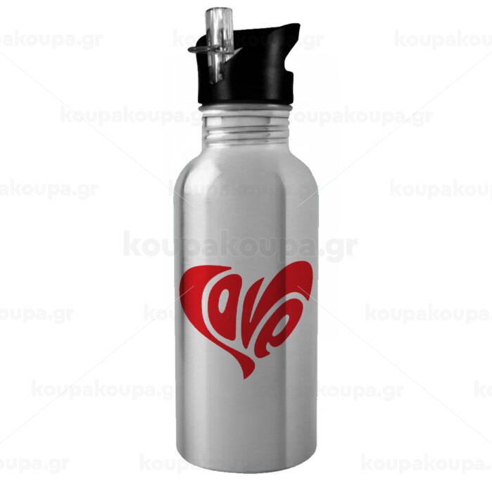 Love, Water bottle Silver with straw, stainless steel 600ml