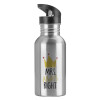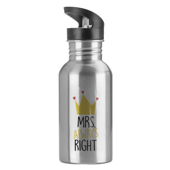 Mrs "Always" right, Water bottle Silver with straw, stainless steel 600ml