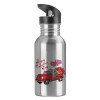 Yoda, happy valentines day (xoxo), Water bottle Silver with straw, stainless steel 600ml