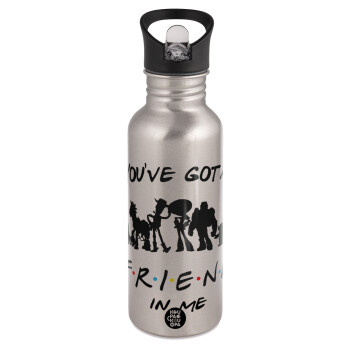 You've Got a Friend in Me, Water bottle Silver with straw, stainless steel 600ml
