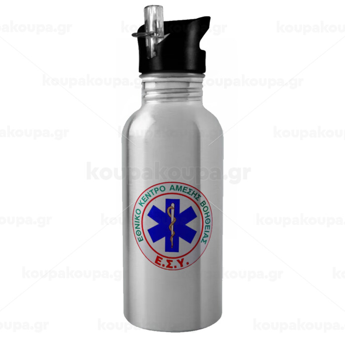 ΕΚΑΒ, Water bottle Silver with straw, stainless steel 600ml