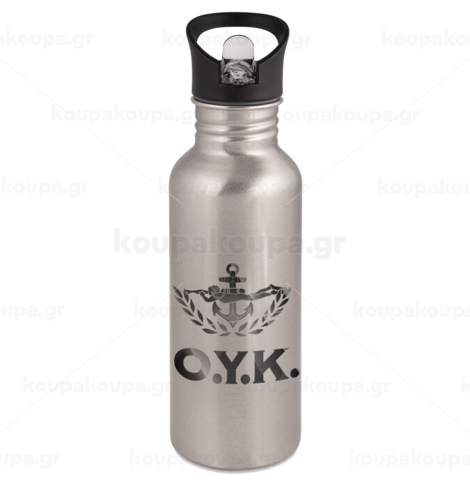 Ο.Υ.Κ., Water bottle Silver with straw, stainless steel 600ml