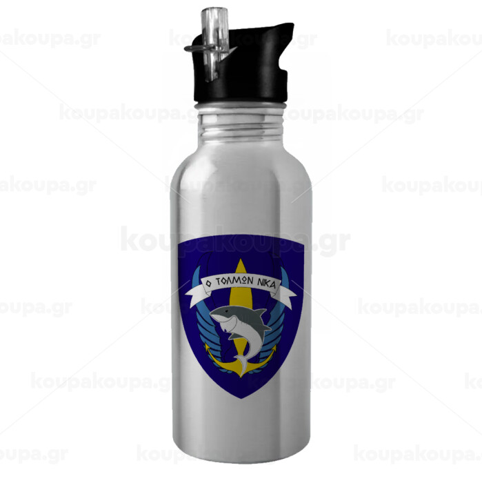 Hellas special force's shark, Water bottle Silver with straw, stainless steel 600ml
