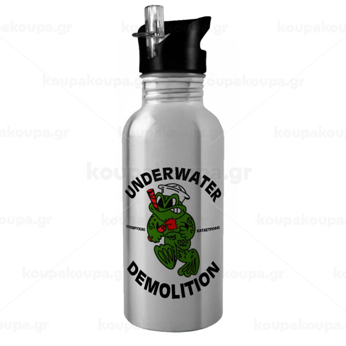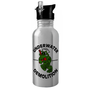 Underwater Demolition, Water bottle Silver with straw, stainless steel 600ml