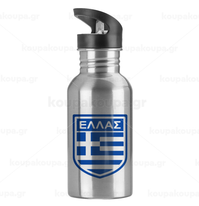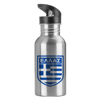 Hellas, Water bottle Silver with straw, stainless steel 600ml