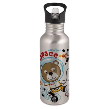 Kids Space, Water bottle Silver with straw, stainless steel 600ml