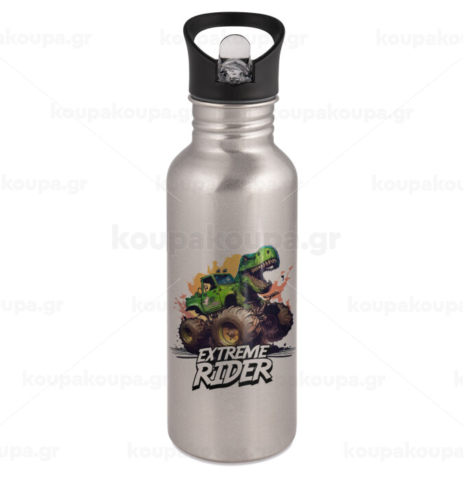 Extreme rider Dyno, Water bottle Silver with straw, stainless steel 600ml