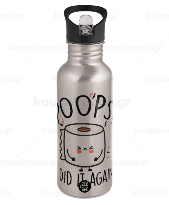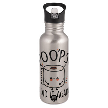 Poops!...I Did It Again, Water bottle Silver with straw, stainless steel 600ml