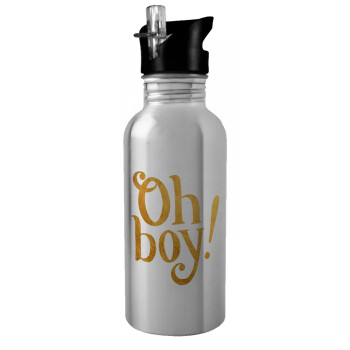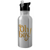 Oh baby gold, Water bottle Silver with straw, stainless steel 600ml