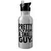Pretty fly for a small guy, Water bottle Silver with straw, stainless steel 600ml