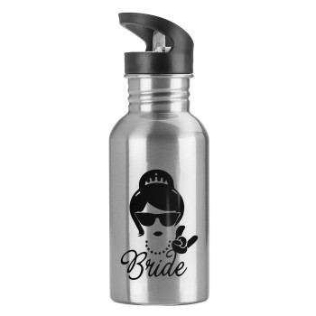 Bride hands, Water bottle Silver with straw, stainless steel 600ml