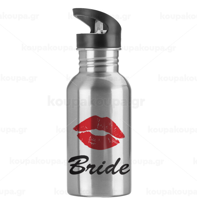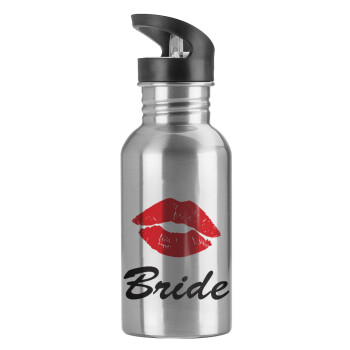 Bride kiss, Water bottle Silver with straw, stainless steel 600ml