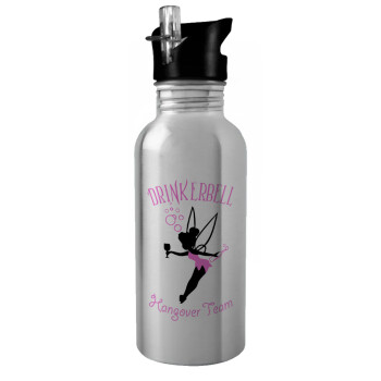 Drinkerbell bachellor, Water bottle Silver with straw, stainless steel 600ml