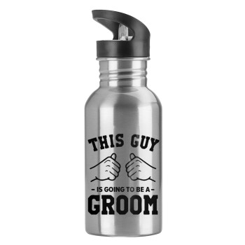 This Guy is going to be a GROOM, Water bottle Silver with straw, stainless steel 600ml