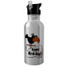 Happy Bird Day, Water bottle Silver with straw, stainless steel 600ml