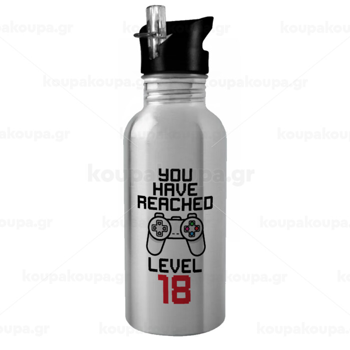 You have Reached level AGE, Water bottle Silver with straw, stainless steel 600ml