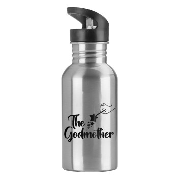 Fairy God Mother, Water bottle Silver with straw, stainless steel 600ml