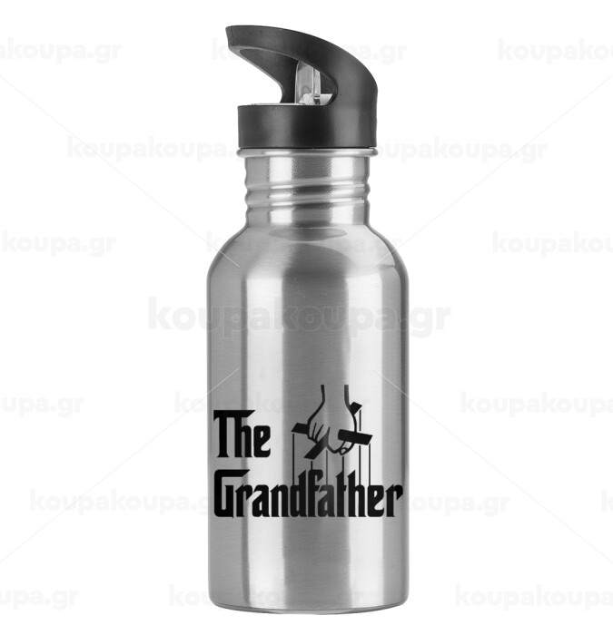 The Grandfather, Water bottle Silver with straw, stainless steel 600ml