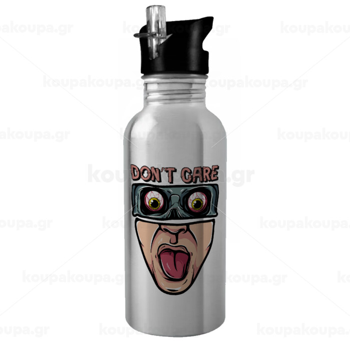 Don't Care, Water bottle Silver with straw, stainless steel 600ml
