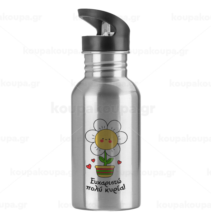 Ευχαριστώ πολύ κυρία!!!, Water bottle Silver with straw, stainless steel 600ml