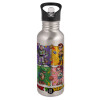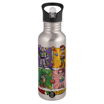Back to the School Buzz & Friends, Water bottle Silver with straw, stainless steel 600ml