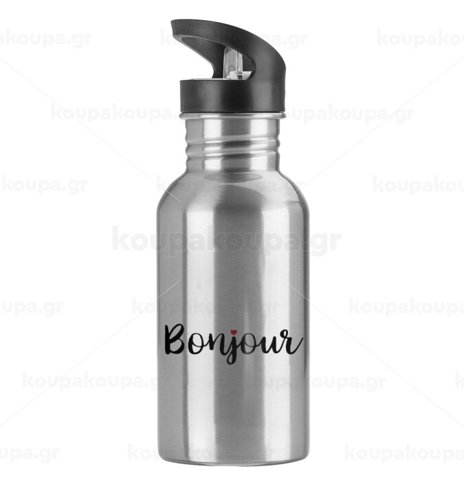 Bonjour, Water bottle Silver with straw, stainless steel 600ml