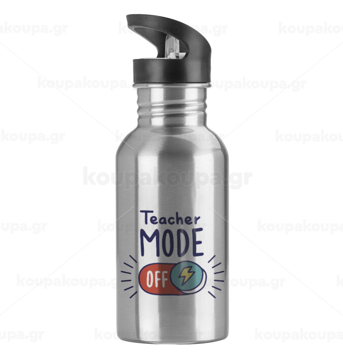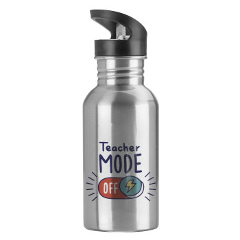 Teacher mode, Water bottle Silver with straw, stainless steel 600ml