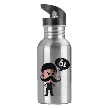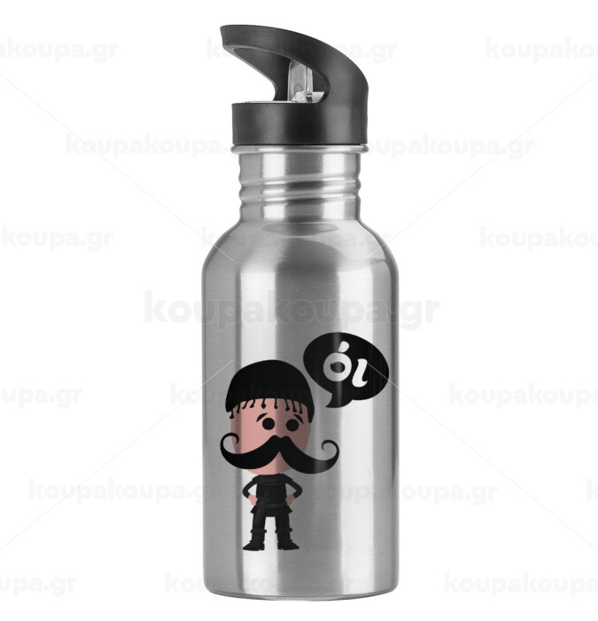 Κρητικός "Οι", Water bottle Silver with straw, stainless steel 600ml