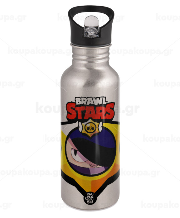 Brawl Stars Edgar, Water bottle Silver with straw, stainless steel 600ml