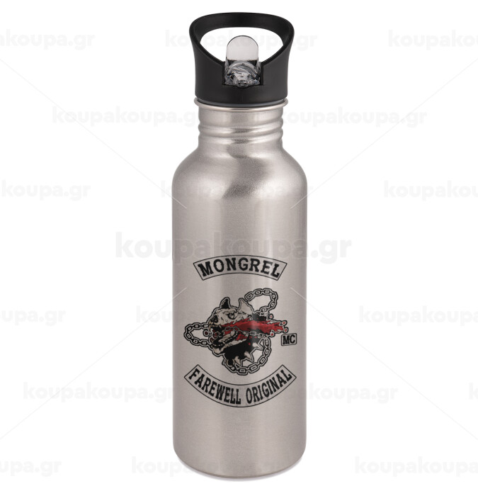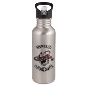 Day's Gone, mongrel farewell original, Water bottle Silver with straw, stainless steel 600ml
