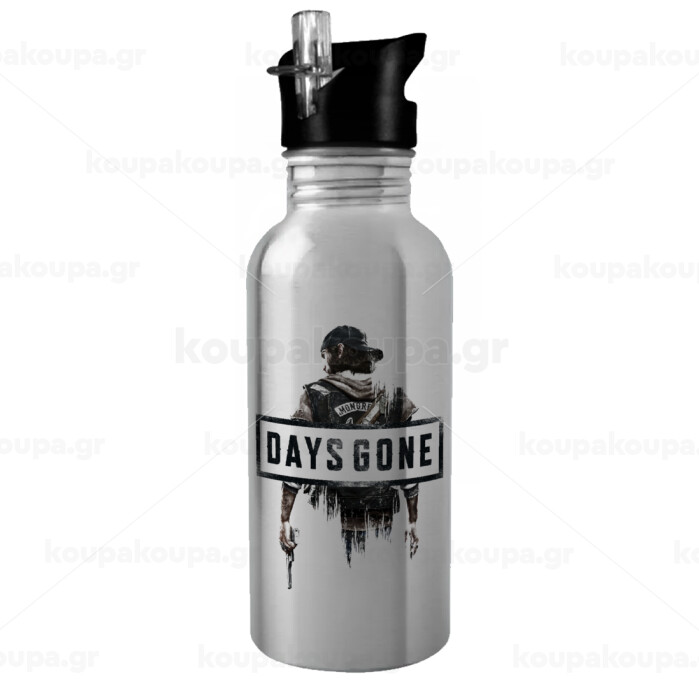 Day's Gone, Water bottle Silver with straw, stainless steel 600ml