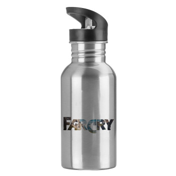 Farcry, Water bottle Silver with straw, stainless steel 600ml