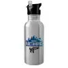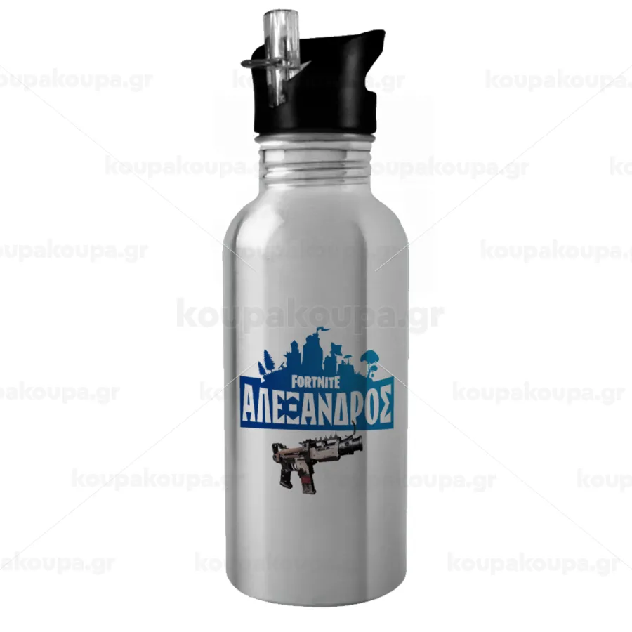 Fortnite with gun με το όνομα σου, Water bottle Silver with straw, stainless steel 600ml