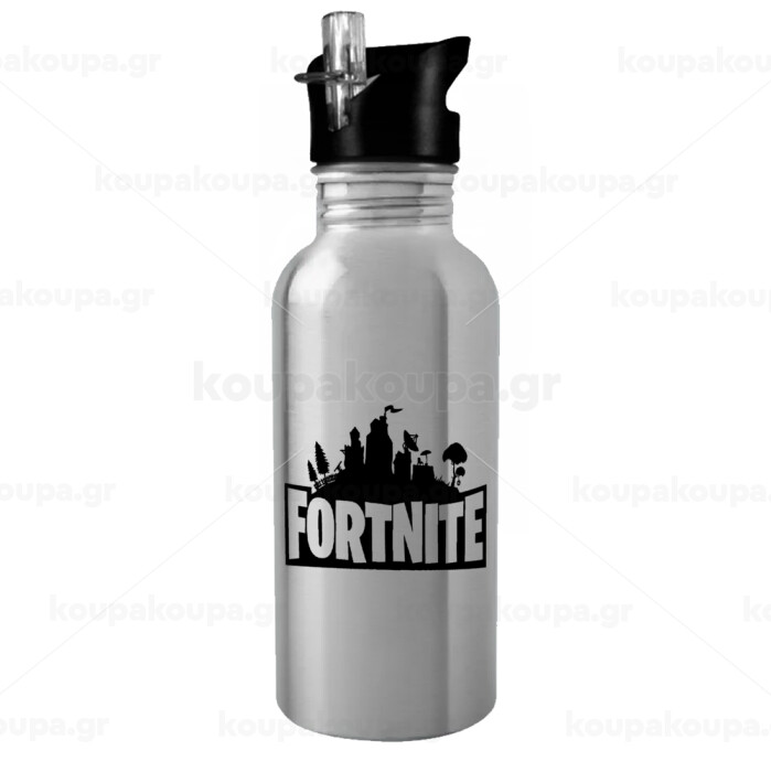 Fortnite, Water bottle Silver with straw, stainless steel 600ml