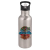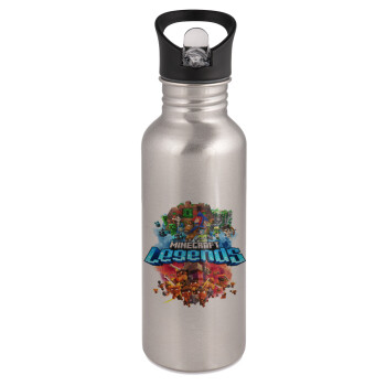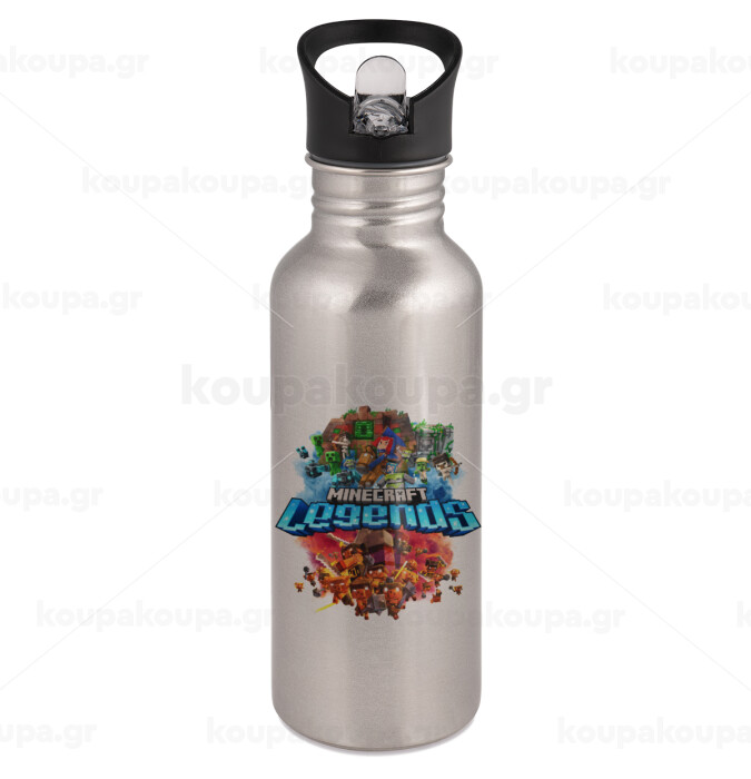 Minecraft legends, Water bottle Silver with straw, stainless steel 600ml