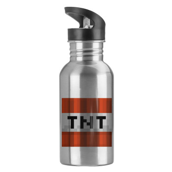 Minecraft TNT, Water bottle Silver with straw, stainless steel 600ml