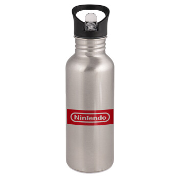 Nintendo, Water bottle Silver with straw, stainless steel 600ml