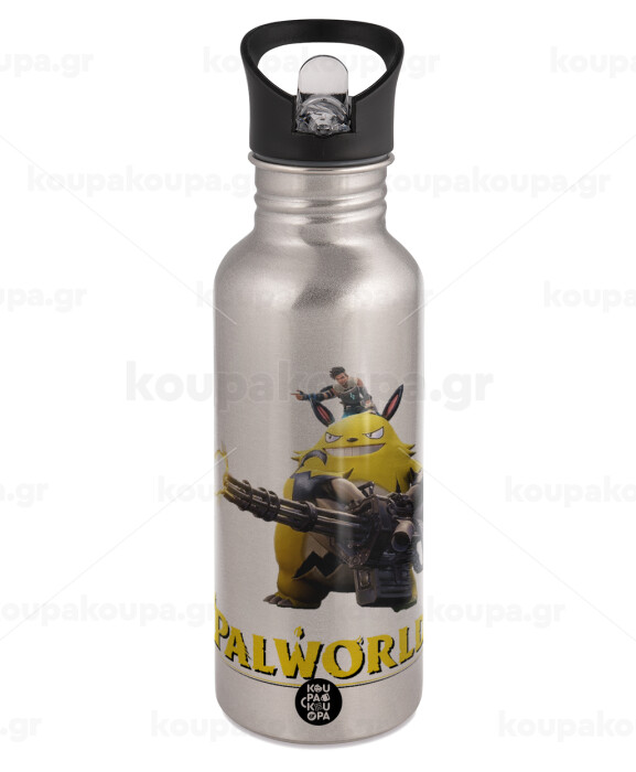 Palworld, Water bottle Silver with straw, stainless steel 600ml