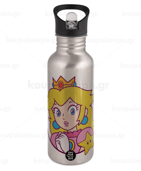 Princess Peach, Water bottle Silver with straw, stainless steel 600ml