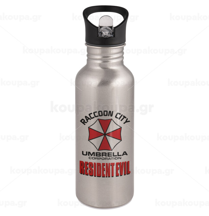Resident Evil, Water bottle Silver with straw, stainless steel 600ml
