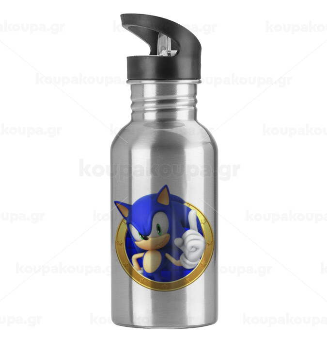 Sonic the hedgehog, Water bottle Silver with straw, stainless steel 600ml