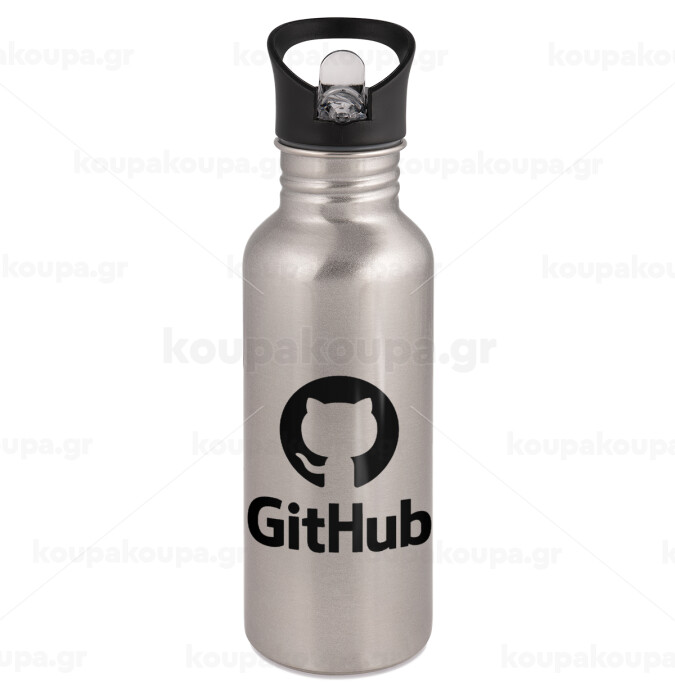 GitHub, Water bottle Silver with straw, stainless steel 600ml